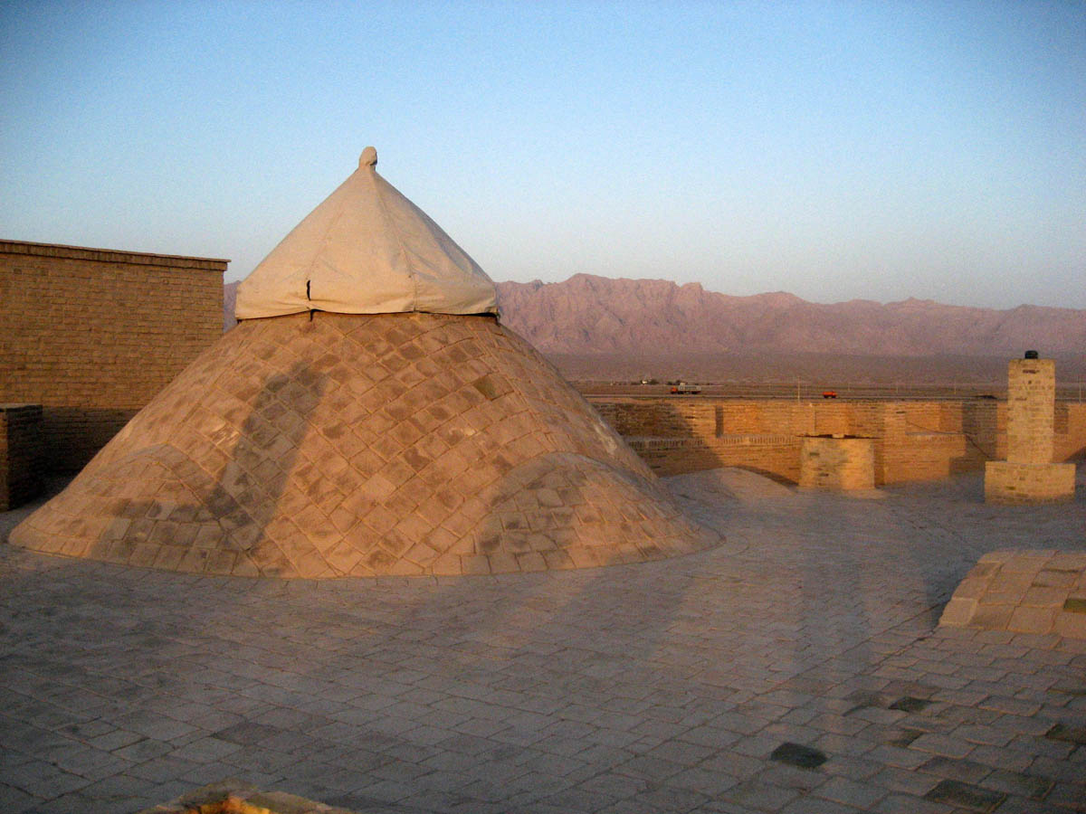 The rooftop of the Zein-o-Din Caravanserai at sunset