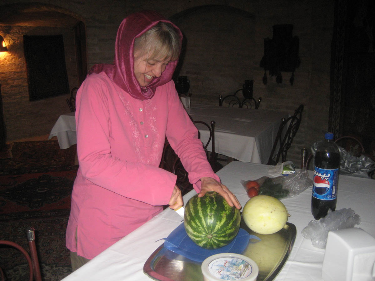 Michele carves open her magic watermelon...let the party begin!
