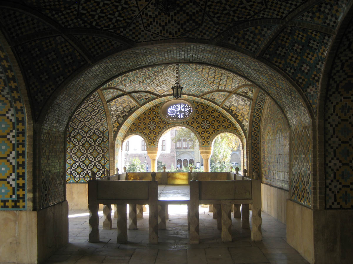 This room in the Golestan Palace had a marble throne, which was more the size of a queen sized marble bed.