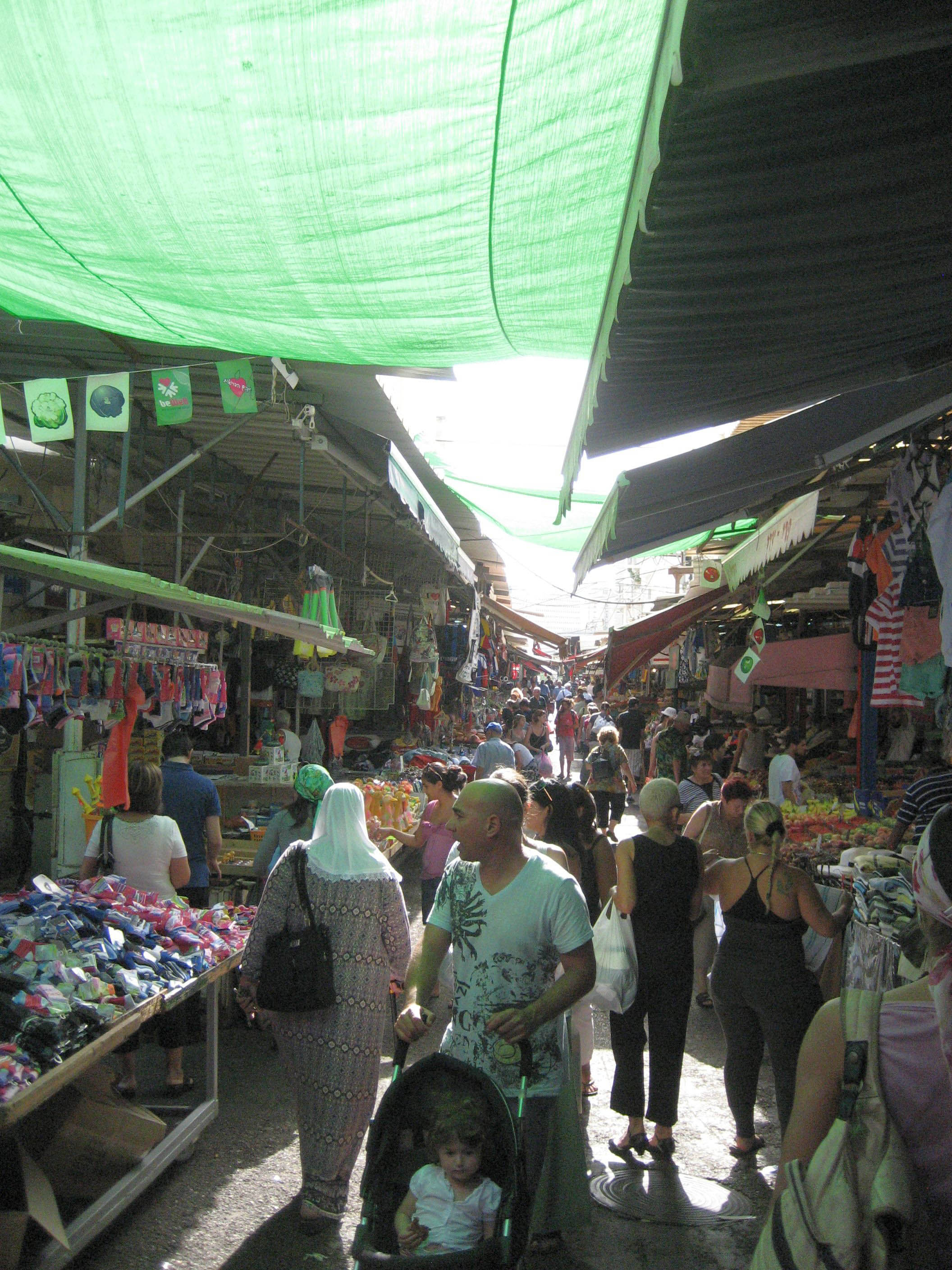 The bustling Carmel Market near the Yemenite Quarter is a good place to get an idea of Tel Aviv daily life. Note extreme differences in woman's dress, typical of Tel Aviv more so than any other Israeli city I visited.
