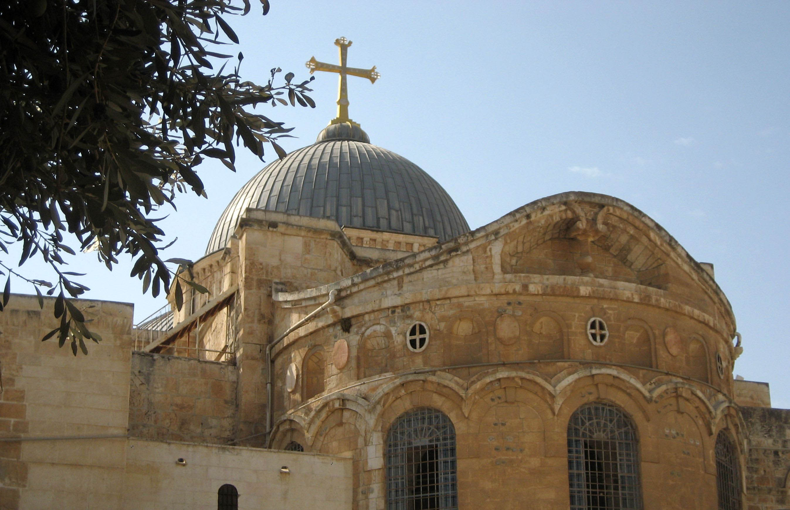 Rear view of the Church of the Holy Sepulchre, constructed around AD 326. It is alleged that Helena, mother of Constantine, discovered three crosses buried here, so it was believed to be the sight of the biblical Calvary.