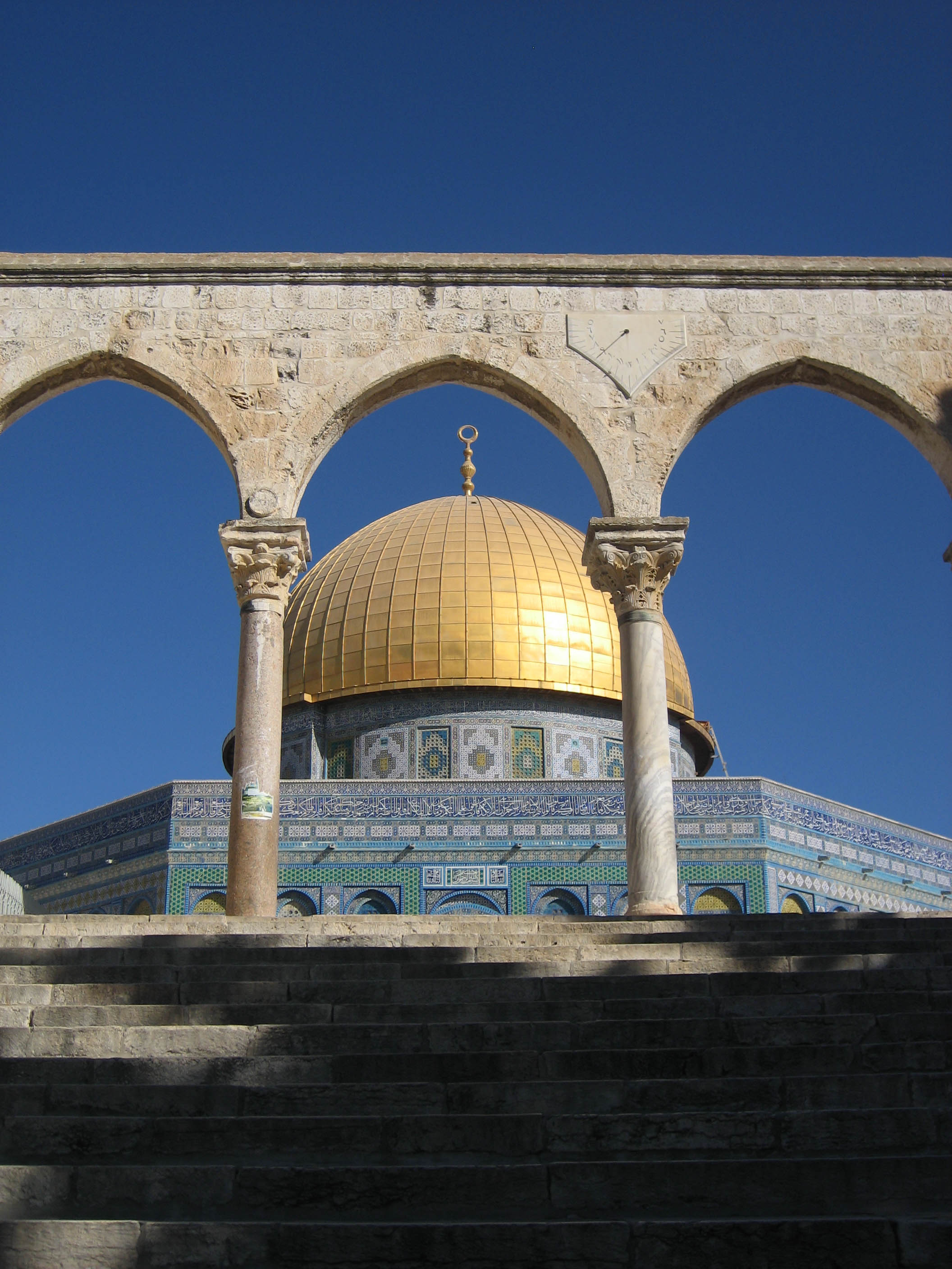 Approach to the Dome of the Rock from entrance to the Temple Mount complex. There are nine gates to enter the Temple Mount, but only one open to non-Muslims.