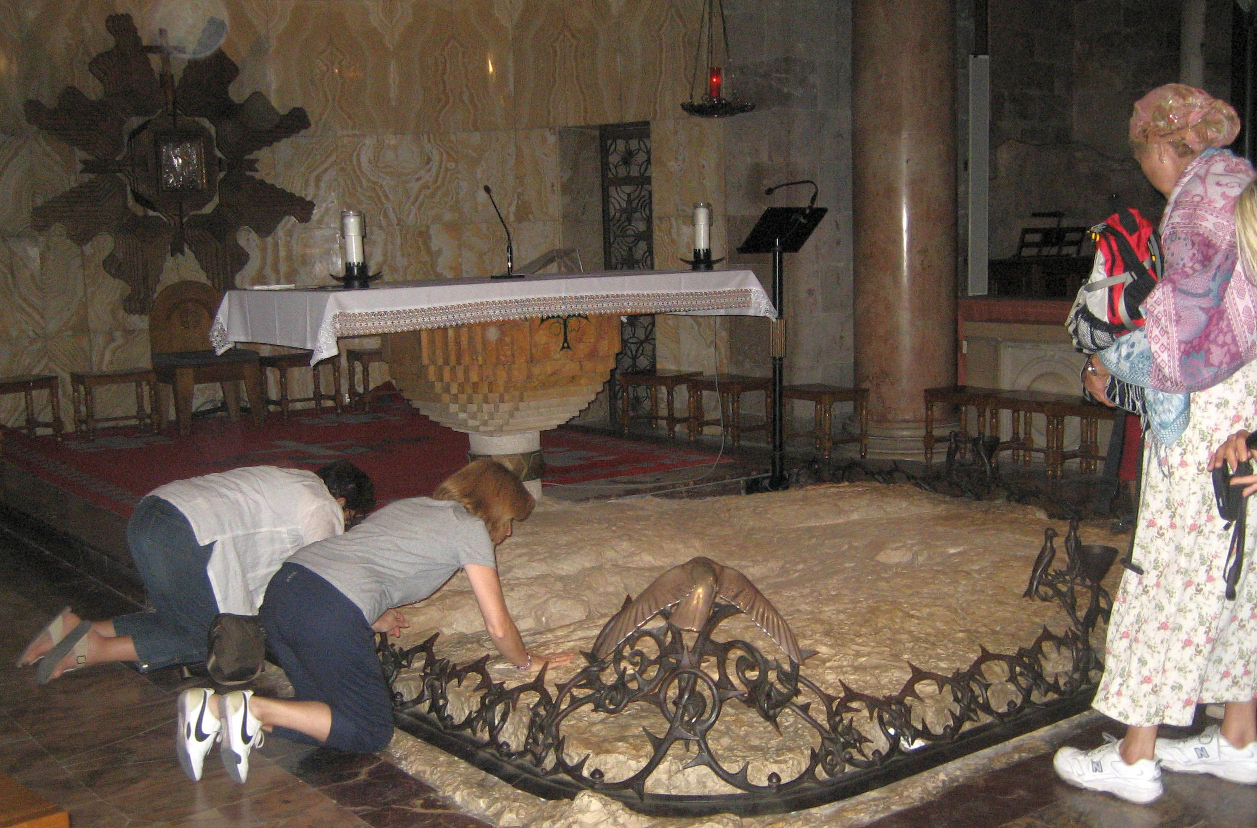 Inside the Church of Nations, aka, "the Basilica of Agony," built on an exposed rock that was purported to be where Jesus sat and wept after betrayal. People actually get on hands and knees to kiss "the Rock of Agony." (A lot of pain and agony on this here hill!)