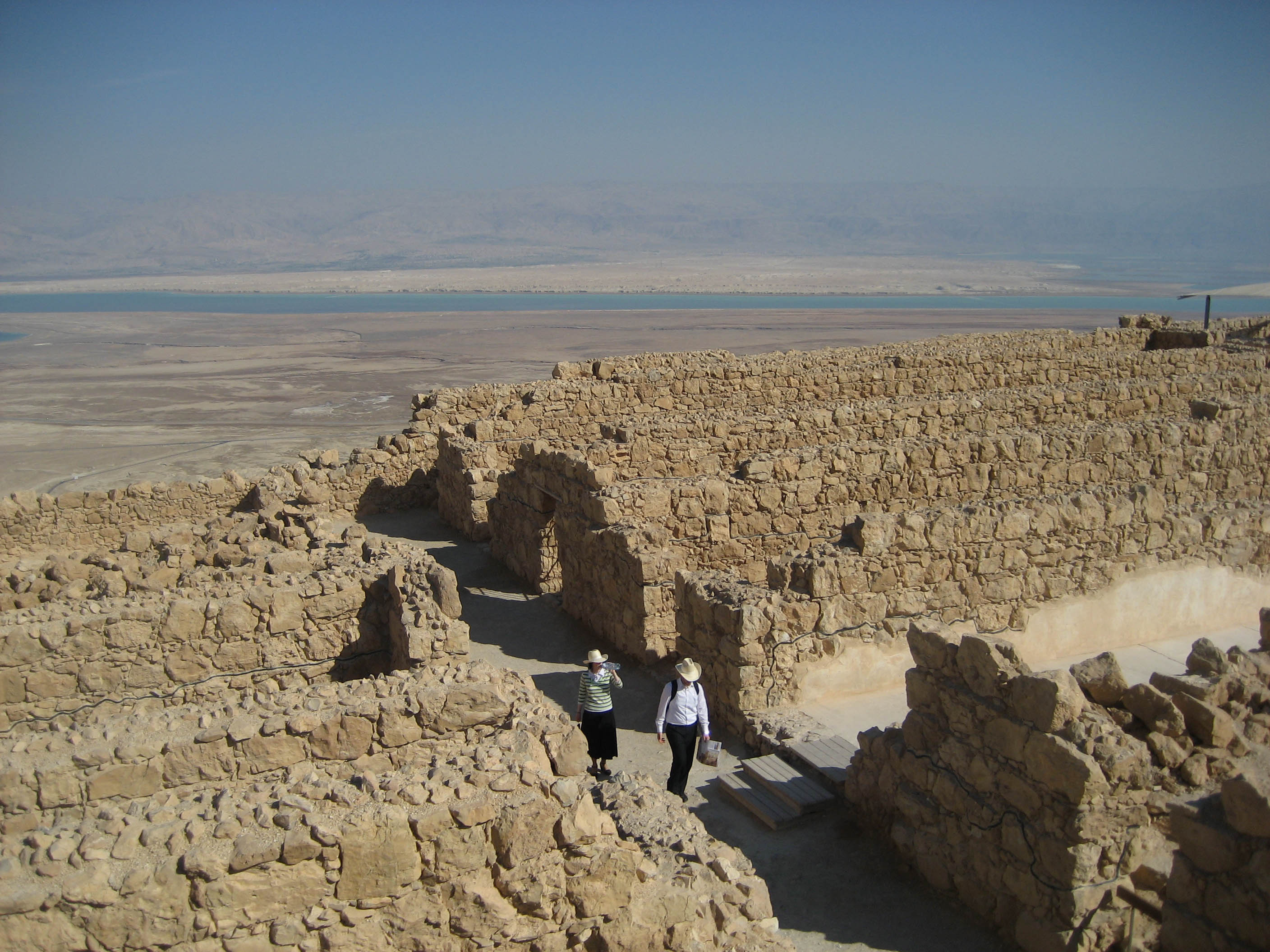 This Orthodox Jewish couple, him with his sideburn curls and yarmulke, and her wearing a wig and long sleeves and skirt had no protection from the scorching desert sun. The only hats for sale in the Masada gift shop were cowboy hats. Pretty funny!