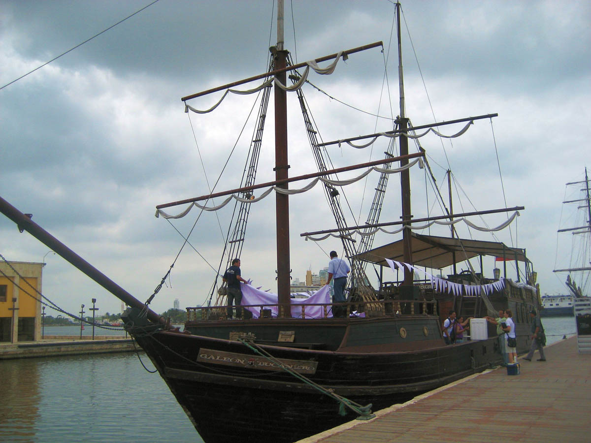 Tall ships along Muelle Turistico de la Bodequita, or the old port of Cartagena.