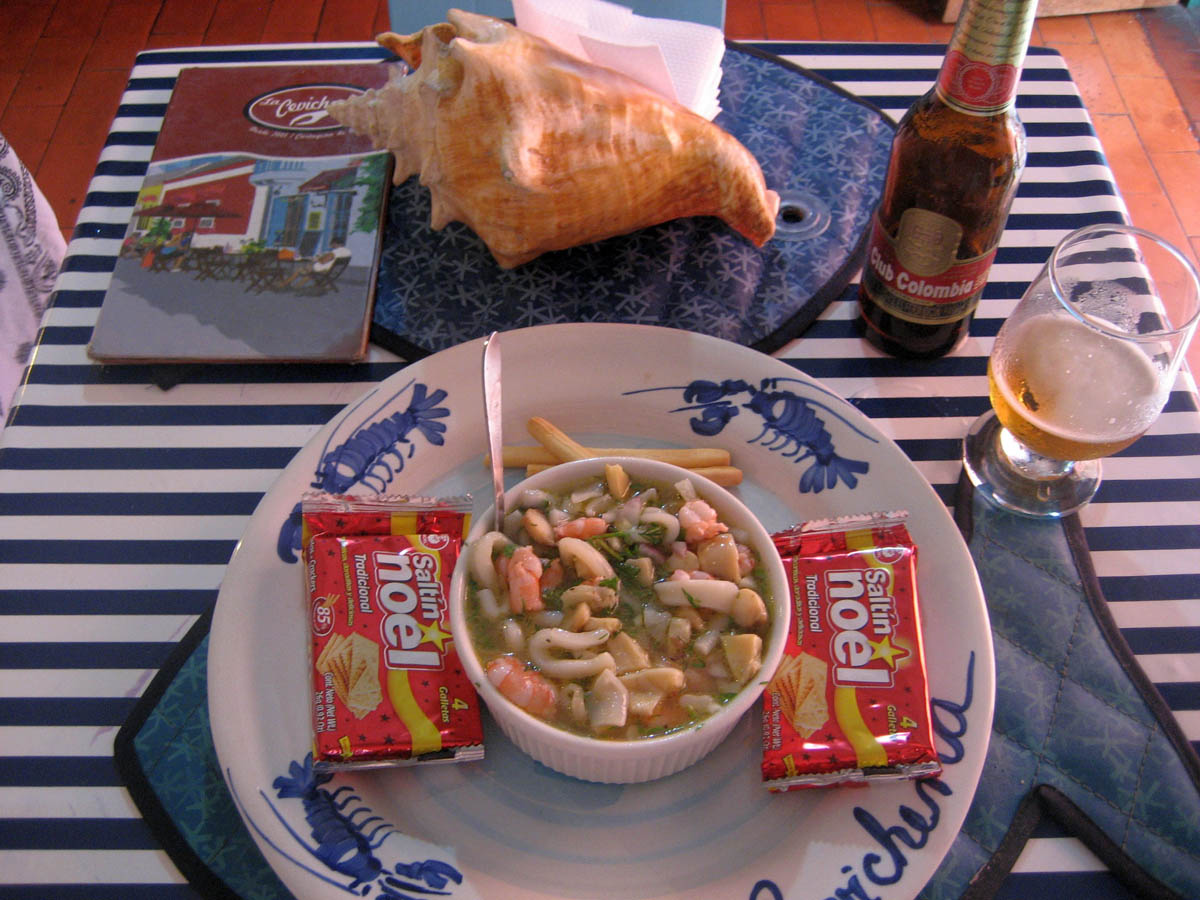 I sampled two kinds of cerviche at this restaurant, this one of squid, shrimp, octopus in mouth-puckering limon and oil.