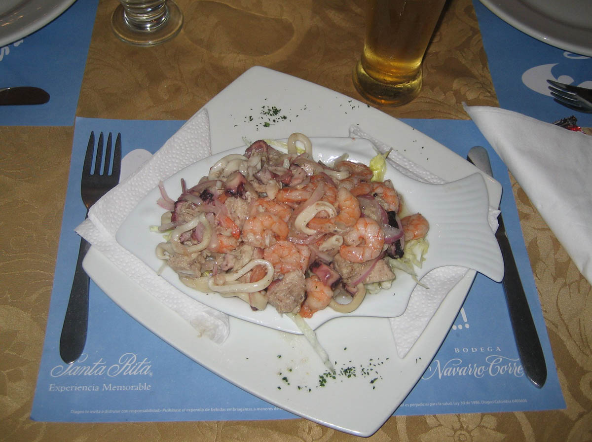 My first course was a "Ensalada de Chucho," a house specialty of smoked shrimp, octopus, squid and fish marinated in oil and lime juice. Remembering back, it was so good it makes my head swim!