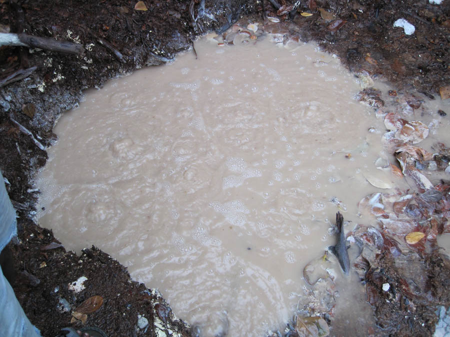 One of the larger cold sulfur pools at Cold Soufriere.