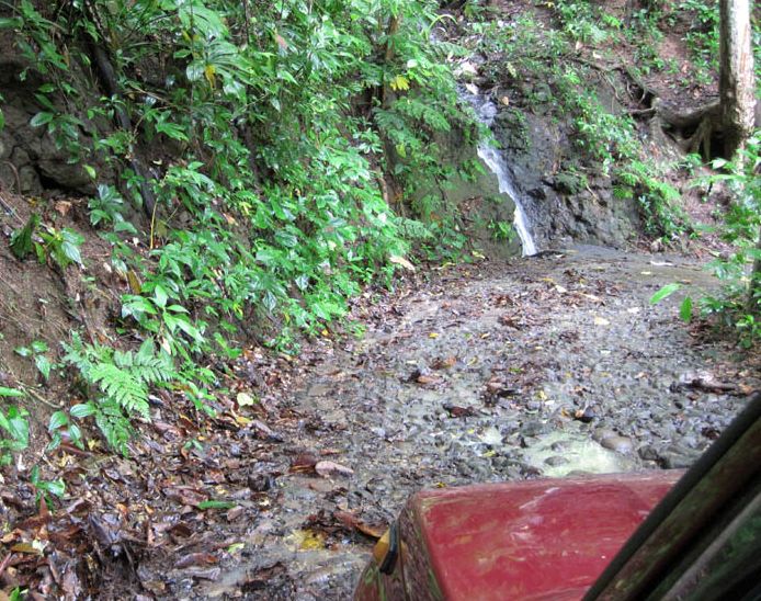The road required a 4WD to traverse the washed out ruts and gullies. This little waterfall offered a refreshing place to rinse the salt water off.