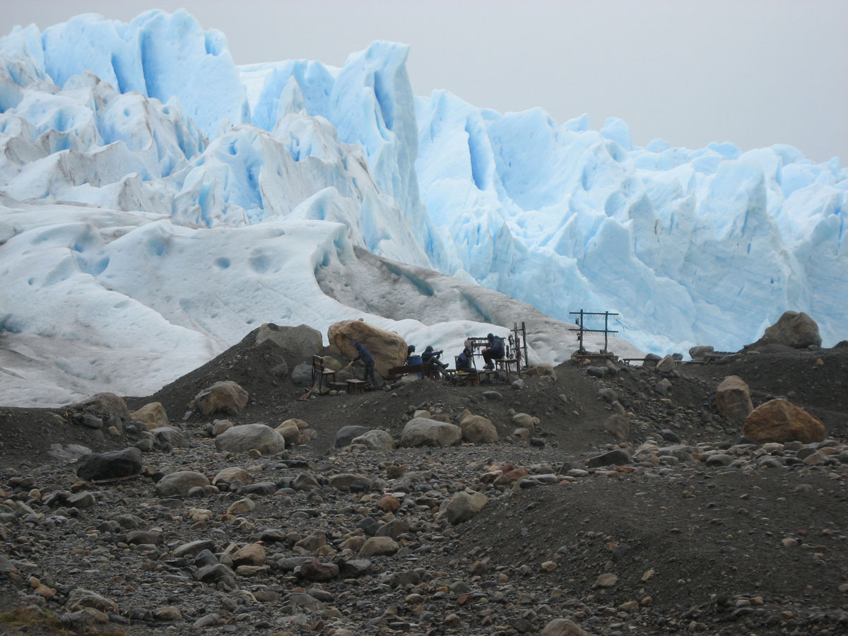 This is the crampon station where the mini-trekkers get fitted for crampons before entering onto the glacier.