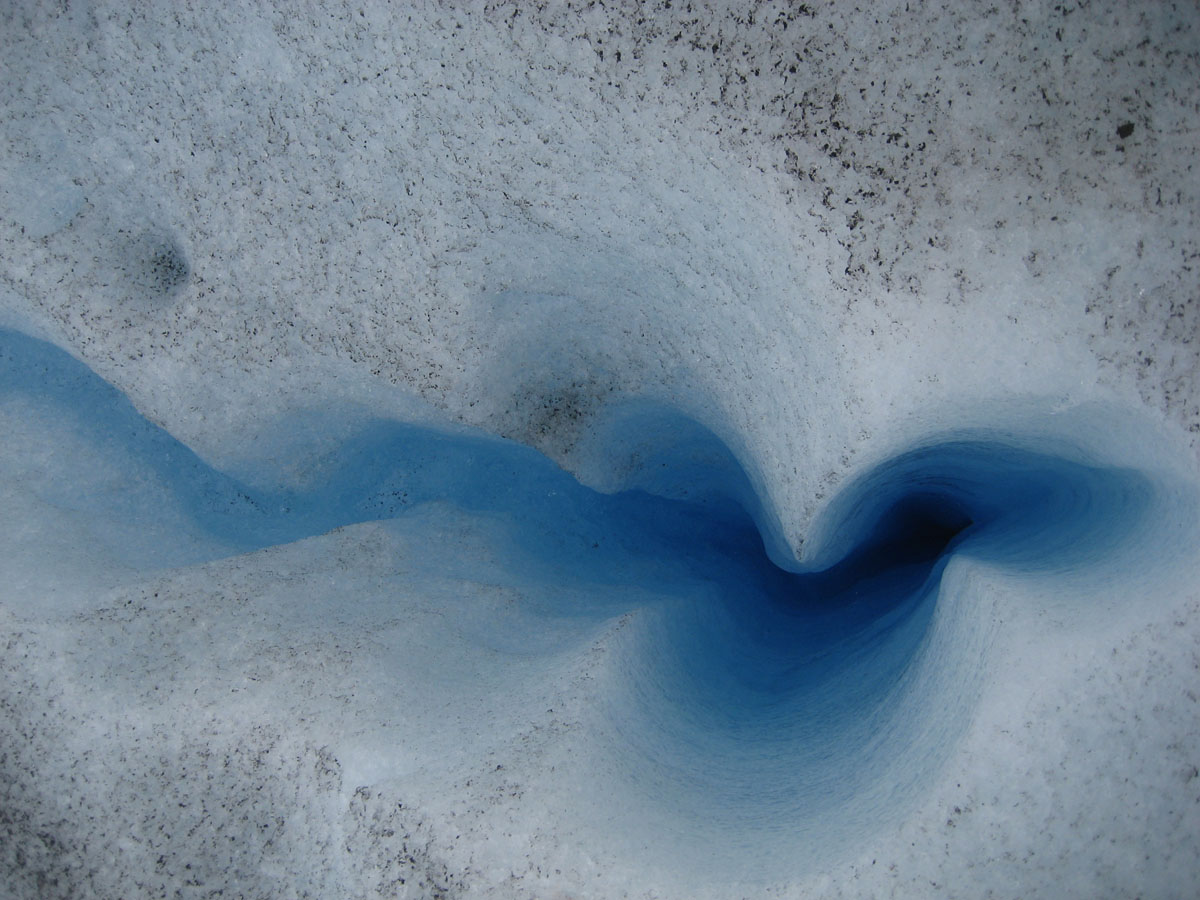 Intense shades of blue looking down into one of the many crevasses in the glacier.