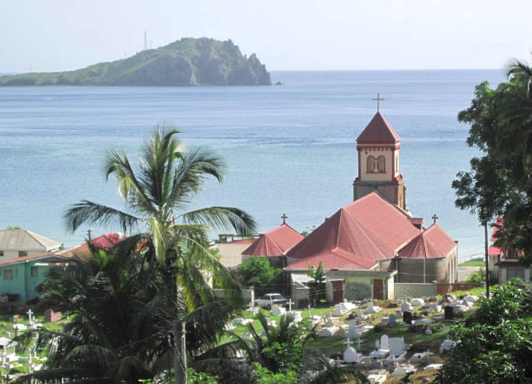Overlooking the Roman Catholic Church of St. Mark in the village of Soufriere.