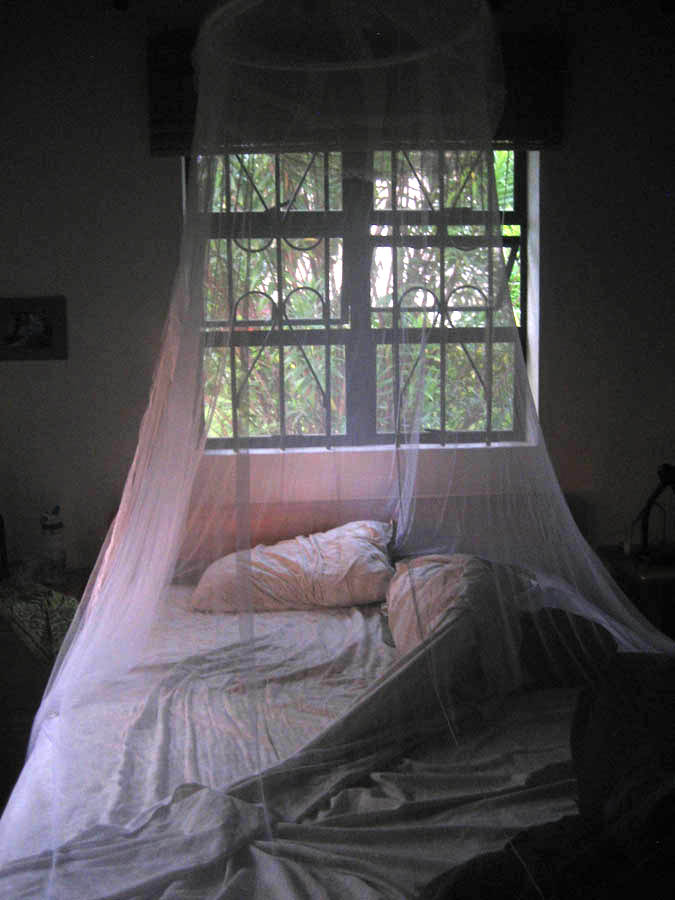 I decided to try out the mosquito net for effect. Not too many mosquitoes in Dominica, because the bats come out at 5:00pm and eat them all!
