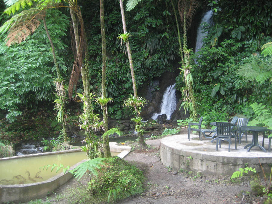 At the bottom of the property is the grotto containing the L’Iviere Seyo Waterfall, which feeds a cool plunge pool, which is adjacent to the warm mineral pool.