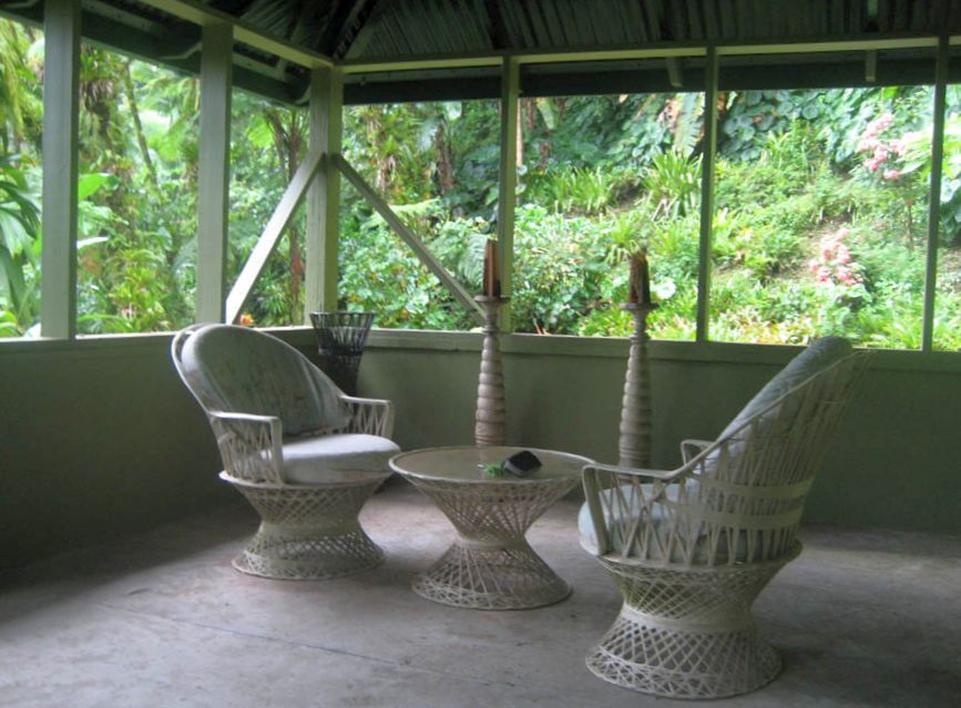 Inside the "birdwatcher's house" on the grounds of Papillote Wilderness Retreat. This is also the location for massage, should you decide to indulge.