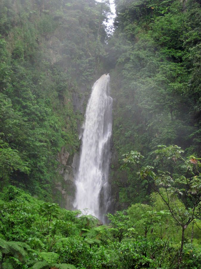 This is the higher of the two falls, or "father falls." At the bottom pool is a hot sulfur spring which flows down as warm river below.