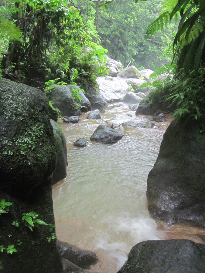 I climb down along the river to find one with a little "shoulder waterfall" that looks just perfect for me...