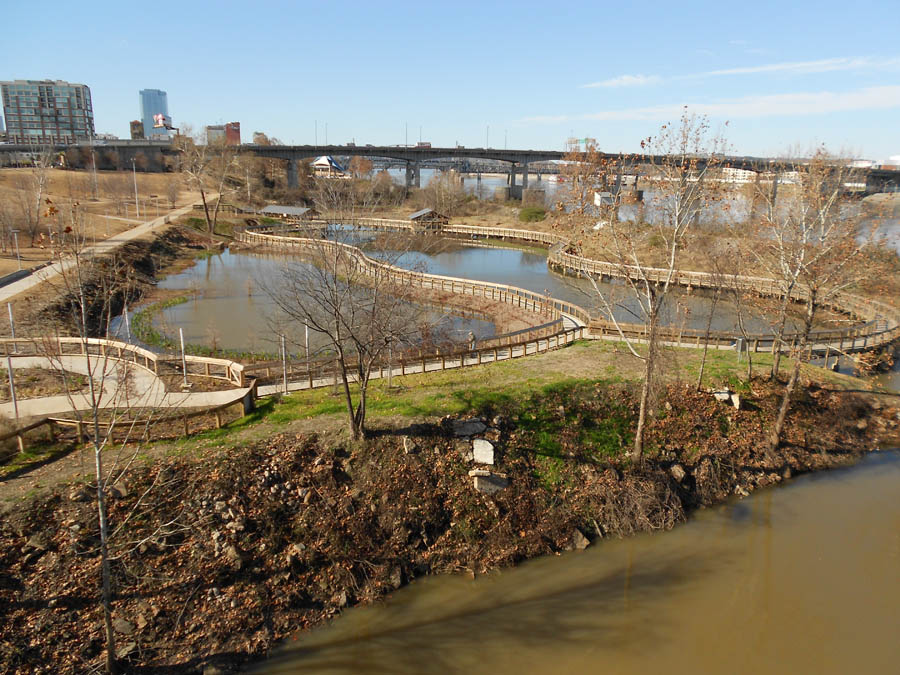 Fourteen miles of trails in Riverside Park along the Arkansas River, near the Clinton Presidential Center.