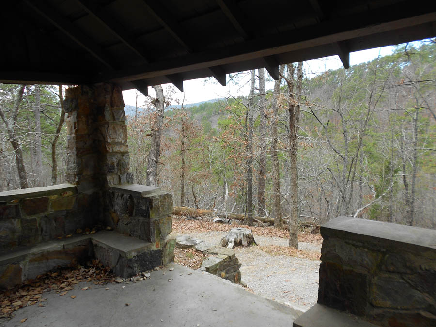 Behind the hotel are many walking paths built to promote wellness in conjunction with the therapeutic springs. This stone structure is a rest stop halfway up the mountain.
