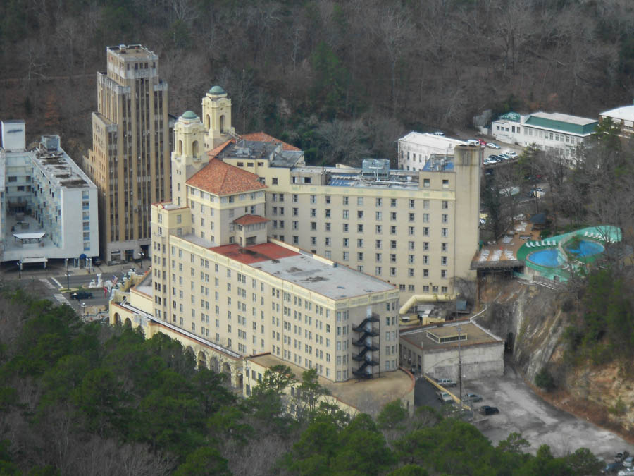 Zooming in on the historic Arlington Hotel at the north entrance to Hot Springs N.P, my venue to see in the 2012 New Year.