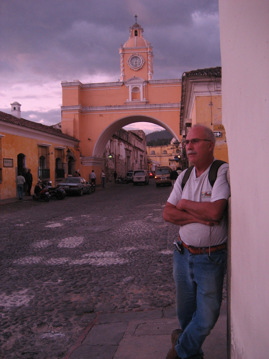 Don looking like the intrepid tourist on the street called "Los Arcos" named for the arch over the street, reportedly built for the nuns to cross the street unseen between the two convents. Ironic that this street is now lined with rockin' bars and nightclubs!