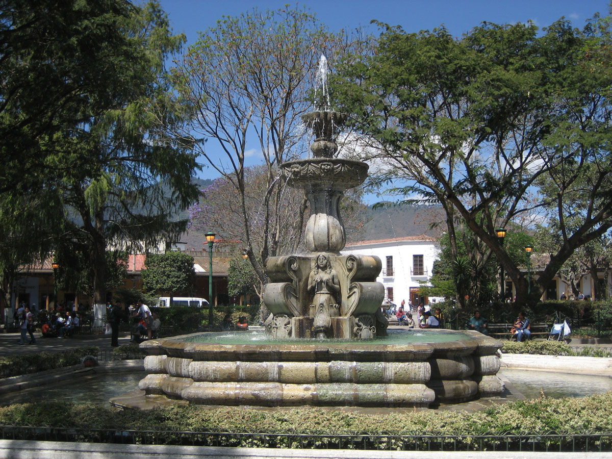 La Fuente de las Sirenas, or fountain, built in 1739 marking the center of the Plaza Mayor.