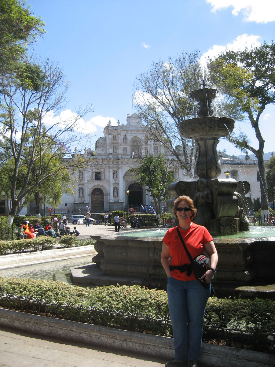 The small central square with the Cathedral in the background.