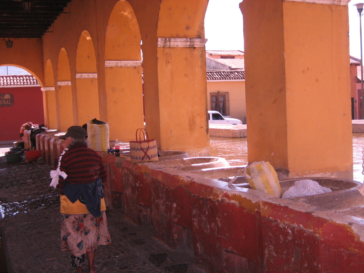 This is public laundry with concrete "tubs" and built in rub boards where local women come to do their laundry