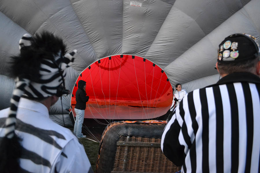 The "zebras, or field officials " watch as the fireman is inflated.