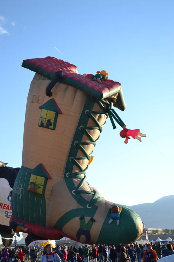 "The Old Woman Who Lived in a Shoe"(Note kids on roof, and hanging off the shoelace!)